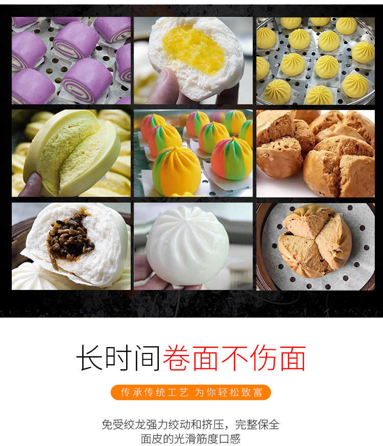 XZ-190智能型卷面式包子機(jī),科技和工藝出乎想象不傷面筋,不斷面筋,薄厚調(diào)節(jié)自如可直接調(diào)節(jié)面皮的薄厚,所出產(chǎn)品外形大小統(tǒng)一,遠(yuǎn)比手工制作美觀!