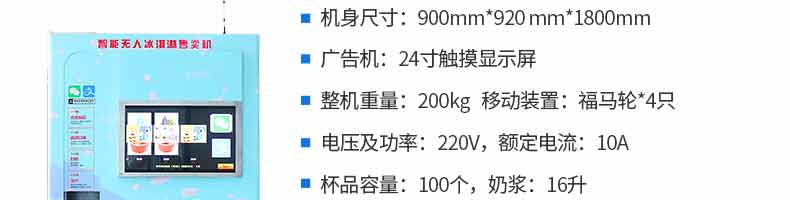 無人售貨冰淇淋機, 人工成本越來越高,無人店、無人售賣機必將是一個趨勢。簡單而又重復(fù)的勞動(售賣)必將被智能無人替代。無人售貨自助冰淇淋機支持多種支付方式,支持遠(yuǎn)程監(jiān)管功能,支持預(yù)冷保鮮,支持多種口味混合,自動清洗少料報警。無需人工、場地?zé)o限制。