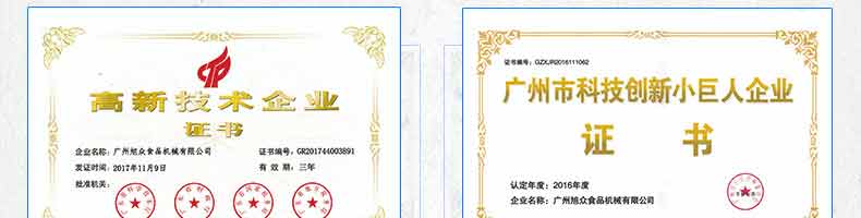 廣州旭眾食品機械有限公司是一家集科研開發(fā),生產(chǎn)設(shè)計,營銷服務(wù)為一體的現(xiàn)代化生產(chǎn)企業(yè)?,F(xiàn)代化生產(chǎn)車間,精湛制造技術(shù),所產(chǎn)機械歷經(jīng)市場重重考驗,不斷贏得海內(nèi)外客戶的贊譽。