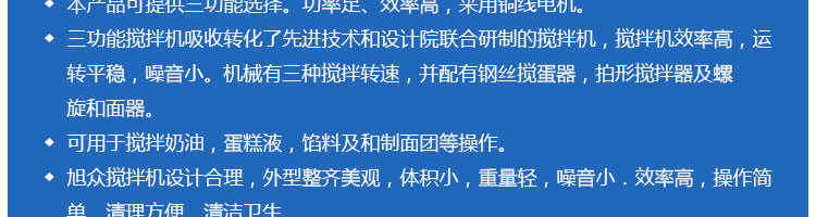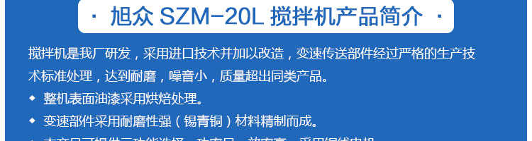 SZM-20型四功能攪拌機,可用于攪拌奶油、蛋糕液、餡料及和制面團等操作。打蛋攪拌機等作攪拌食料、揉和面團之用,是生產優(yōu)質糕點的理想設備,適用于酒店、飯店、學校部門、面包屋以及食品廠家。