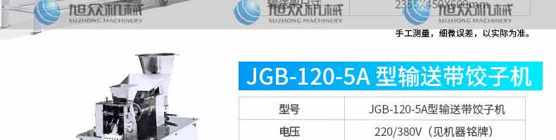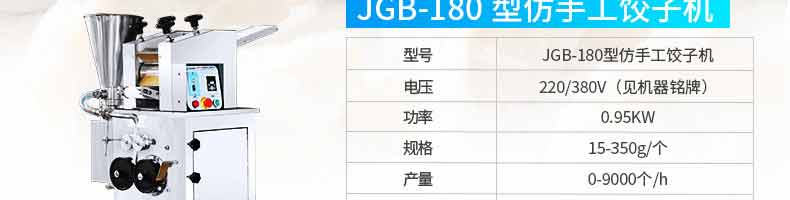 JGB-210型仿手工餃子機(jī),本機(jī)采用自動(dòng)壓面皮包餃子的新工藝技術(shù),本機(jī)可生產(chǎn)速凍餃子等,能生產(chǎn)各種肉餡、肉菜混合餡、全菜餡及其他種餡的餃子,適用于餃子館、食品生產(chǎn)廠家、賓館、飯店、餐廳、團(tuán)體食堂、學(xué)校、部隊(duì)。免費(fèi)上門安裝調(diào)試,贈(zèng)送面點(diǎn)工藝