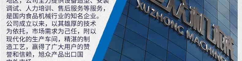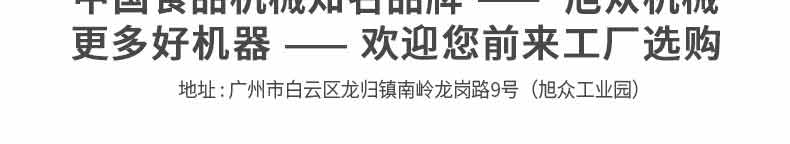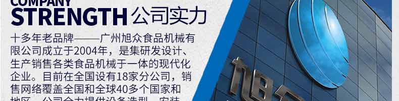 廣州旭眾食品機(jī)械有限公司是一家集科研開發(fā),生產(chǎn)設(shè)計(jì),營(yíng)銷服務(wù)為一體的現(xiàn)代化生產(chǎn)企業(yè)?,F(xiàn)代化生產(chǎn)車間,精湛制造技術(shù),所產(chǎn)機(jī)械歷經(jīng)市場(chǎng)重重考驗(yàn),不斷贏得海內(nèi)外客戶的贊譽(yù)。