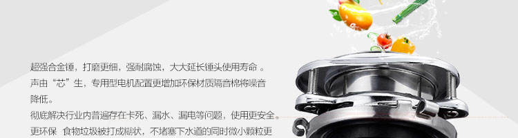 ACLQ37-廚房垃圾處理器,采用先進的研磨系統(tǒng),采用特殊合金錘粉技術,能根據垃圾的強度,自動調節(jié)工作位置,處理垃圾的范圍和細度優(yōu)良。能夠有效地將食物垃圾研磨成細小顆粒,直接從下水管道排出,從而實現(xiàn)及時方便快捷的廚房清潔,滿足現(xiàn)代健康家居的要求。