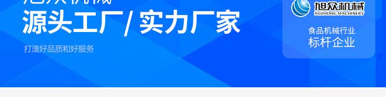 廣州旭眾食品機械有限公司是一家集科研開發(fā),生產(chǎn)設(shè)計,營銷服務(wù)為一體的現(xiàn)代化生產(chǎn)企業(yè)?,F(xiàn)代化生產(chǎn)車間,精湛制造技術(shù),所產(chǎn)機械歷經(jīng)市場重重考驗,不斷贏得海內(nèi)外客戶的贊譽。