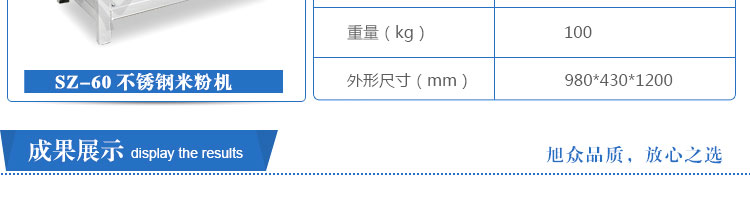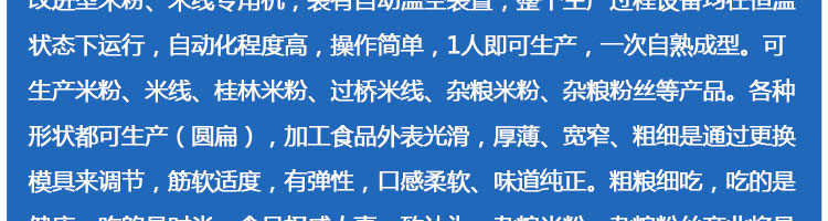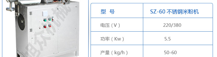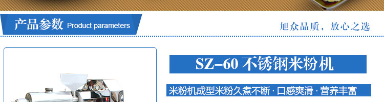 SZ-60不銹鋼米粉機(jī),可生產(chǎn)米粉、米線(xiàn)、桂林米粉、過(guò)橋米線(xiàn)、年糕、糍粑等產(chǎn)品。各種形狀都可生產(chǎn)(圓、扁),加工食品外表光滑,厚薄、寬窄、粗細(xì)均勻可調(diào),筋軟適度,有彈性,口感柔軟、味道純正。