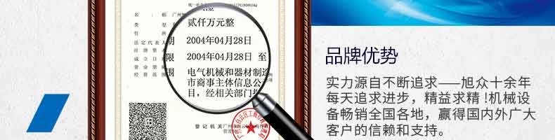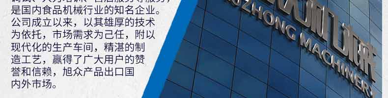 廣州旭眾食品機(jī)械有限公司是一家集科研開(kāi)發(fā),生產(chǎn)設(shè)計(jì),營(yíng)銷(xiāo)服務(wù)為一體的現(xiàn)代化生產(chǎn)企業(yè)?,F(xiàn)代化生產(chǎn)車(chē)間,精湛制造技術(shù),所產(chǎn)機(jī)械歷經(jīng)市場(chǎng)重重考驗(yàn),不斷贏得海內(nèi)外客戶的贊譽(yù)。