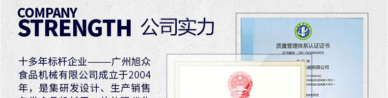 廣州旭眾食品機(jī)械有限公司是一家集科研開發(fā),生產(chǎn)設(shè)計(jì),營(yíng)銷服務(wù)為一體的現(xiàn)代化生產(chǎn)企業(yè)。現(xiàn)代化生產(chǎn)車間,精湛制造技術(shù),所產(chǎn)機(jī)械歷經(jīng)市場(chǎng)重重考驗(yàn),不斷贏得海內(nèi)外客戶的贊譽(yù)。